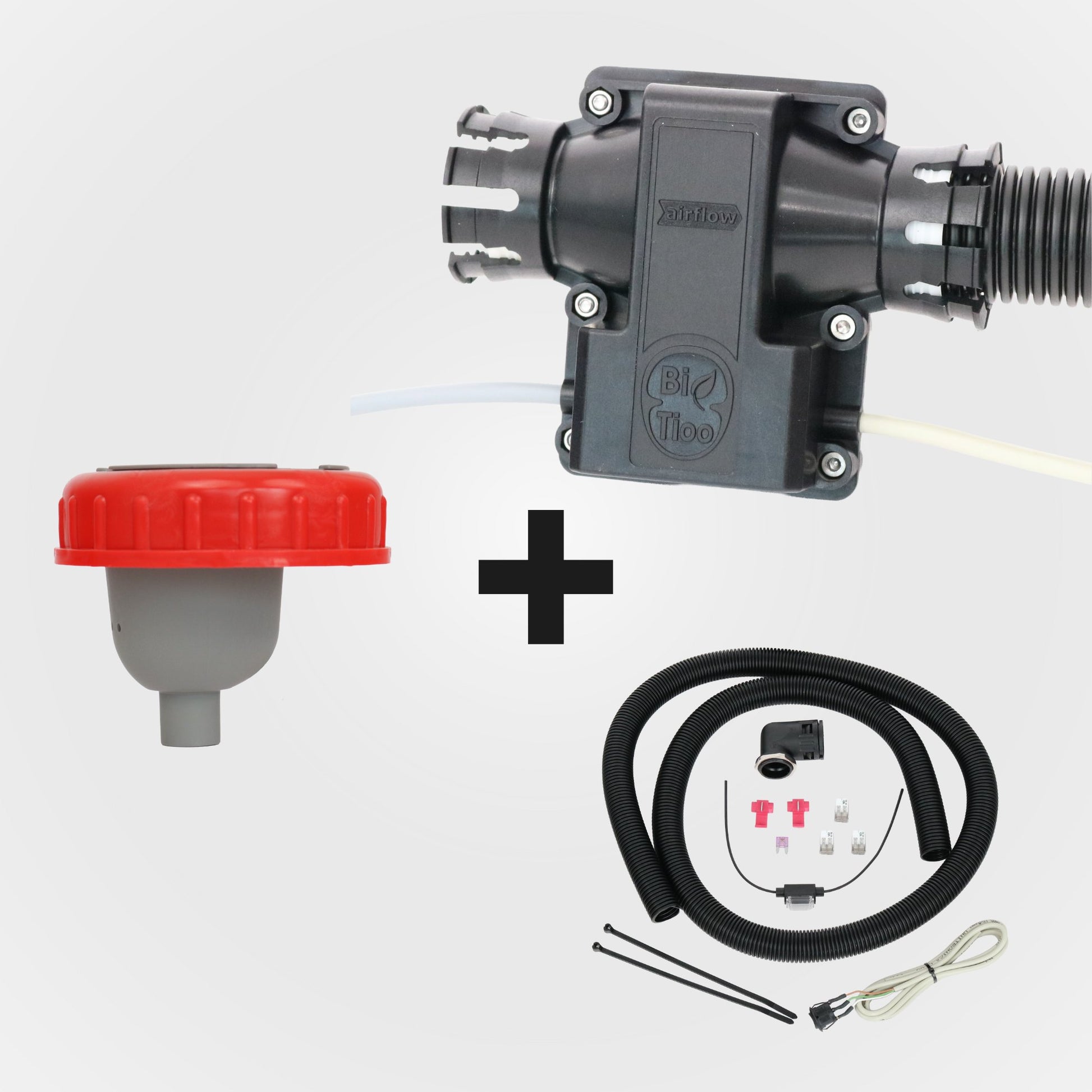Es gibt den 90°-Lüfterwinkel für BioTioo-Modelle (angepasst und verkürzt für den direkten Einbau) und den geraden Lüfterwinkel für Fremdmarken-Trenntoiletten.